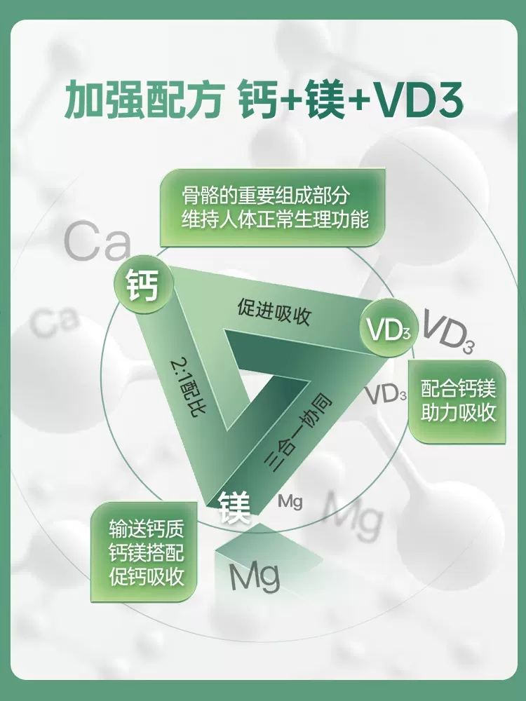 钙镁2:1,特含D3 吸收快,减少钙沉积,预防肾胆结石/心脑血管钙(硬)化风险;镁有扩张血管和增强心肌,稳定情绪助眠的作用,非常适合三高及心脑血管亚健康中老年人补钙!